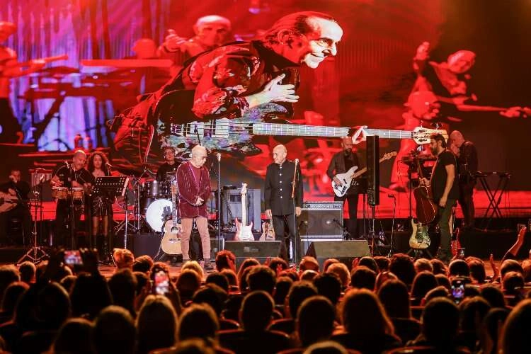 İSTANBUL (İGFA9 - Güllerin İçinden şarkısı ile konserlerine başlayan grup, şarkının son bölümünü sahnedeki led ekranda Özkan Uğur’un geçmiş senelerde bass gitarıyla yaptığı kendine has solo performansına bırakarak ‘Özkan hep bizimle.’ mesajını verdi.