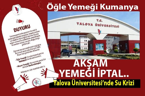 “Yalova genelinde yaşanan kuraklık nedeniyle şebeke suyunun yemek üretimi ve tüketimi için sağlık standartlarına uygun olmaması sebebiyle yemekhane hizmetlerimizde zorunlu düzenlemeye gidilmiştir. 8 Aralık 2025 Pazartesi gününden itibaren öğle yemeği standart menü yerine kumanya olarak verilecek, akşam yemeği hizmetimiz geçici olarak durdurulmuştur.”