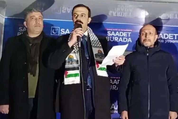 Saadet Partisi Bursa İl Başkanlığı'nın 15 Temmuz Demokrasi Meydanında düzenlediği iftar programında konuşan Saadet Partisi Bursa Büyükşehir Belediye Başkan Adayı İkram Akkaya, Ak Parti Büyükşehir Belediye Başkanı Alinur Aktaş’a seslenerek, “İsrail’le ticareti ve diplomatik ilişkileri kesin biz de seçimden lehinize çekilelim” dedi.