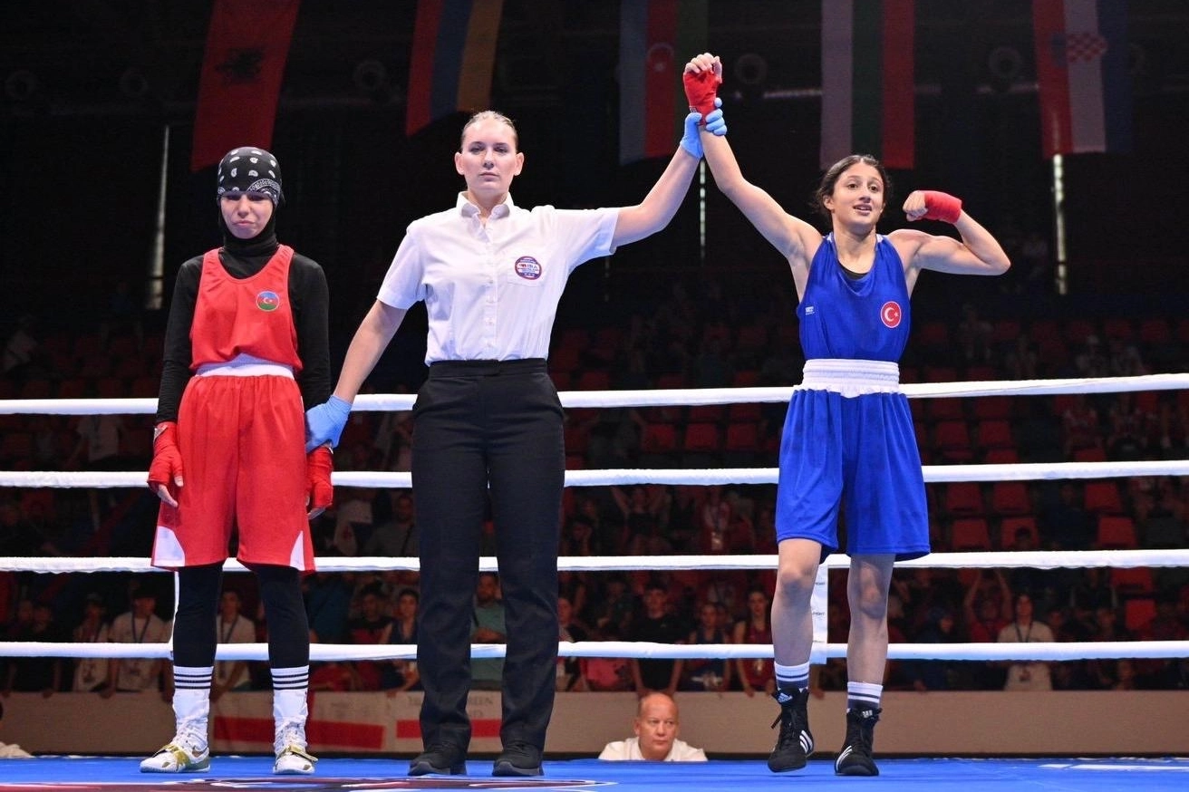 BURSA (İGFA) - Şampiyonada 46 kiloda ringe çıkan Bursa Büyükşehir Belediyesporlu boksör, ilk turda Macar rakibini yenerek adını çeyrek finale yazdırdı. Çeyrek finalde Azerbaycanlı sporcu ile karşı karşıya gelen Büyükşehir Belediyesporlu Sudem Temuçin, rakibi karşısında aldığı galibiyetle yarı final biletini kaptı ve madalyayı garantiledi. Finale kalma maçında İrlandalı rakibiyle karşı karşıya gelen Sudem Temuçin, şanssız bir yenilgi alsa da Üst Minikler Avrupa Boks Şampiyonası'nda bronz madalyanın sahibi oldu.
