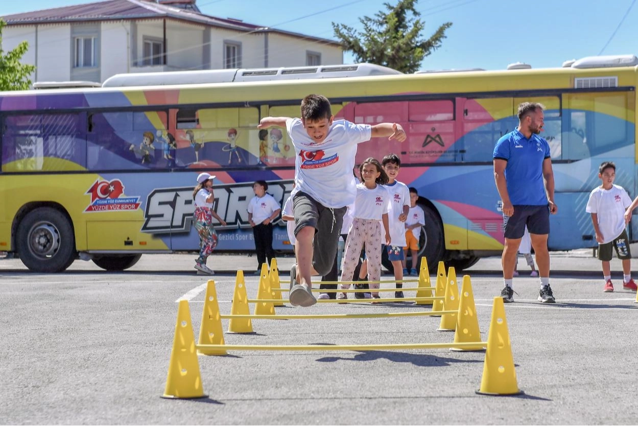 MERSİN (İGFA) - Her hafta kent genelinde farklı bir adreste çocukları sporla buluşturan mobil aracın bu haftaki ilk durağı Gülnar’da 100. Yıl İlkokulu olurken, ikinci durağı ise Mut’ta Karacaoğlan Çınaraltı Parkı oldu. Okulları tatil olan ve çoğunlukla evde zaman geçiren çocuklar oyun parkurunda gün boyu eğlenceli zaman geçirirken arkadaşlarıyla birlikte farklı bir aktivite yapmanın da tadını çıkardı.