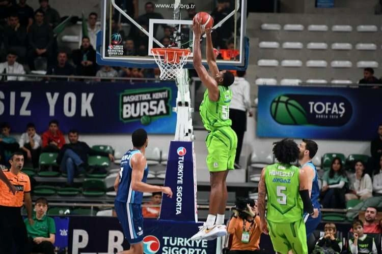 BURSA (İGFA) - Türkiye Sigorta Basketbol Süper Ligi 8. haftasında TOFAŞ, evinde Türk Telekom’u ağırladı. Nilüfer TOFAŞ Spor Salonu’nda oynanan maça Cassius Winston, Caleb Homesley, Mustafa Kurtuldum, Zeljko Sakic, Austin Wiley beşiyle başlayan Mavi Yeşilliler, ilk basketini Austin Wiley ile buldu. Mustafa Kurtuldum ve Caleb Homesley’in sayılarıyla 7-2 öne geçen Bursa ekibi, Zeljko Sakic’in serbest atış sayıları sonrası televizyon molasına 9-8 önde girdi. Mola dönüşü J.J. O’Brien ve Özgür Cengiz’in üçlükleriyle 7. dakikada skoru 17-10 yapan ev sahibi takım, Cassius Winston’ın basketi sonrası ilk periyodu 19-12 önde kapattı.