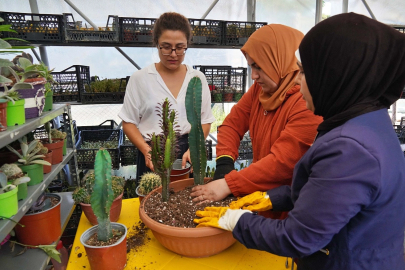 Serada üretim yapan Türkan Kaymaz, “Burada kaktüs ve sukulent bitkilerini büyütüp, çoğaltıyoruz. Kadınlar olarak birlikteyiz. Kardeşçe her şeyi birlikte yapmaya çalışıyoruz. Bu serada arkadaş çevremiz çoğaldı. Koşarak geliyoruz, çeşitli etkinlikler yapıyoruz. Toprakla uğraşıyoruz. Yetiştirdiğimiz ürünleri satmaya da başladık. İnşallah ev ekonomimize daha fazla katkısı olur” dedi.