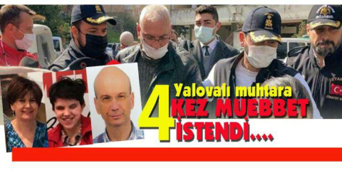 KARTAL'da miras paylaşımını konuşmak amacıyla avukatlık bürosunda buluştuğu 4 kişiyi silahla öldürdüğü ve bir kişiyi de ağır yaraladığı iddia edilen muhtar Ahmet Salih Belginer'in 4 kez müebbet ve 15 yıla kadar hapsi istendi.