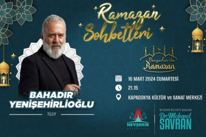 Nevşehir Belediyesi, Ramazan Sohbetleri kapsamında Yazar, Sinema ve Dizi Oyuncusu Bahadır Yenişehirlioğlu’nu bu akşamı Nevşehirliler ile buluşturacak.