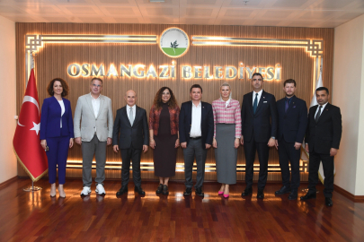 BURSA (İGFA) - Marmara Belediyeler Birliği Toplantısı için Bursa’ya gelen Tekirdağ Büyükşehir Belediye Başkanı Candan Yüceer, Bilecik Belediye Başkanı Melek Mızrak Subaşı, Büyükçekmece Belediye Başkanı Hasan Akgün ve Kartal Belediye Başkanı Gökhan Yüksel, Osmangazi Belediye Başkanı Erkan Aydın’ı ziyaret etti.