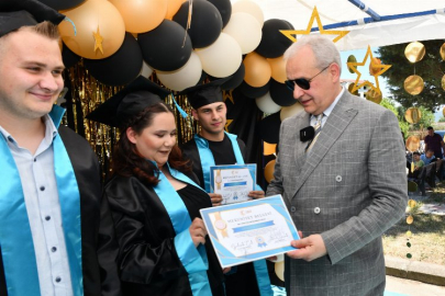 Mezuniyet töreni, İbn-i Sina Özel Eğitim Meslek Okulu bahçesinde gerçekleştirildi. Bu anlamlı gün için özel olarak hazırlanan pasta büyük bir coşkuyla kesildi.