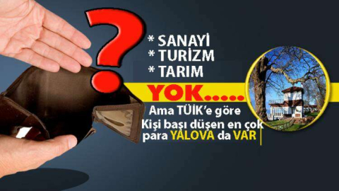 Sanayi, Turizm, Tarımı olmayan Yalova ise 15 şehir arasında milli geliri en yüksek 12.il oldu.Bu verilere göre Yalova’nın kişi başı milli geliri 55.029 TL oldu. Ay olarak hesaplandığında ise 1 kişiye ayda düşen ise ister inanın ister inanmayın 4.585.75 liraymış !