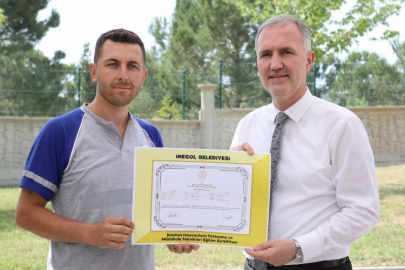 İnegöl Belediyesi Veteriner İşleri Müdürlüğü bünyesinde görev yapan personellere Halk Eğitim Merkezi iş birliğinde 96 saatlik “Başıboş Hayvanları Yakalama ve Müdahale” eğitimi verildi. Bu eğitimle bilgileri güncellenen ve daha donanımlı hale gelen saha ekiplerine sertifikalarını Belediye Başkanı Alper Taban takdim etti.