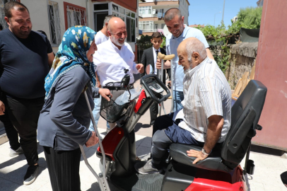 Başkan Çolakbayrakdar, Mithatpaşa Mahallesi'nde ikamet eden Özbek ailesinin misafiri oldu. Yüzde 77 engelli olan 72 yaşındaki Satıa Özbek ile yüzde 98 engelli olan 78 yaşındaki Satılmış Özbek'le sohbet eden Başkan Çolakbayrakdar, onların çok istediği akülü aracı hediye etti.