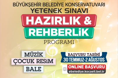 Hazırlık ve Rehberlik Programı Büyükşehir Belediye Konservatuvarı’nın Müzik, Bale ve Çocuk Resim bölümlerinde gerçekleştirilecek. Başvurular 30 Temmuz- 2 Ağustos tarihleri arasında ebelediye.kocaeli.bel.tr adresinden online olarak yapılacak.