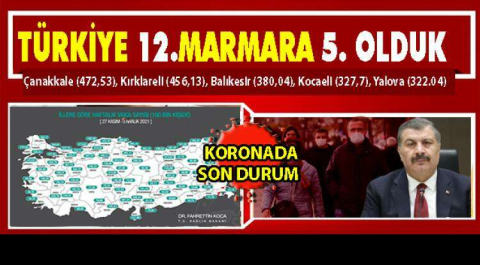 Buna göre Marmara bölgesinde vaka sayısı en yüksek 5.il yine Yalova oldu.
