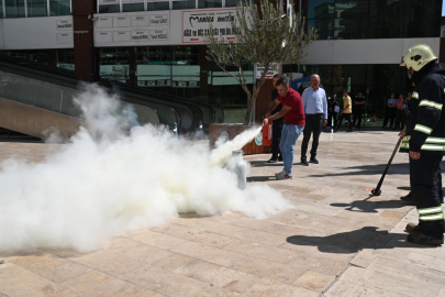 MANİSA (İGFA) - Manisa Su ve Kanalizasyon İdaresi (MASKİ) Genel Müdürlüğü, kurum içi iş sağlığı ve güvenliğini sağlamak, acil durum anında hizmet binasının hızlıca tahliyesini sağlamak ve müdahale hızını artırmak amacıyla ‘6331 sayılı İş Sağlığı ve Güvenliği Kanunu’ kapsamında ‘Binaların Yangından Korunması Hakkındaki Yönetmeliği’ gereğince yangın tatbikatı düzenledi. Manisa Büyükşehir Belediyesi İtfaiye Dairesi Başkanlığı ve MASKİ Genel Müdürlüğü Destek Hizmetleri Dairesi Başkanlığı iş birliğiyle organize edilen tatbikata Büyükşehir Belediyesi İtfaiye Daire Başkanı Gürhan İnal, MASKİ daire başkanları, İş Yeri Sağlık ve Güvenlik Biriminden iş güvenliği uzmanları ve personeller katıldı. MASKİ idari hizmet binasında mesai saatleri içerisinde gerçekleştirilen yangın tatbikatında hareketli dakikalar yaşandı. Yangın alarmının çalmasının ardından personeller binadan hızlıca ayrıldı. Senaryo gereği yangının çıktığı 10.kata kısa sürede ulaşan itfaiye ekipleri yangını kontrol altına aldı. Yangın esnasında yaralanan personele ise iş yeri hekimi tarafından müdahale edilerek sağlık ekiplerine teslim edildi. Öte yandan uygulama için hizmet binası önünde belirlenen alanda personele yangın söndürme tüpü verilerek yangına müdahale etmeleri sağlandı.
