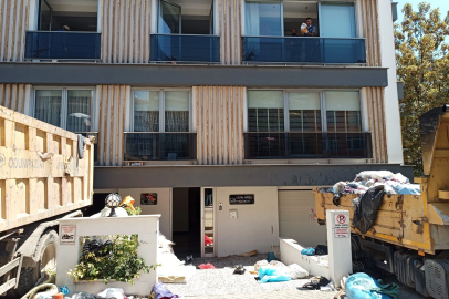 Evin içerisinde ve bahçedeki çöplerin dışarı çıkarılıp temizlenmesi için çalışan ekipler, uzun uğraşın ardından çöp evden 9 kamyon çöp çıkardı.