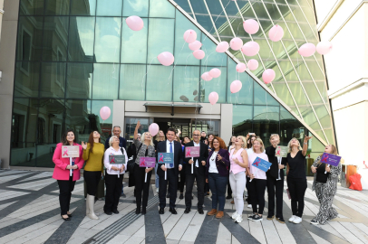 Osmangazi'de pembe balonlar meme kanserine farkındalık için uçuruldu