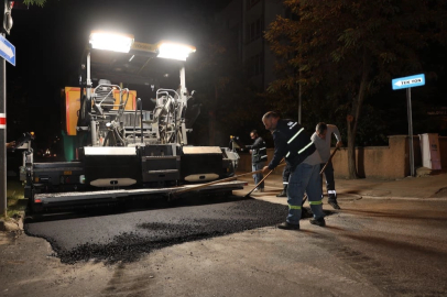 Eskişehir Büyükşehir Belediyesi ekipleri, Uluönder Mahallesi’nde trafik akışının etkilenmemesi için asfalt onarım ve yenileme çalışmalarına gece boyunca devam etti.