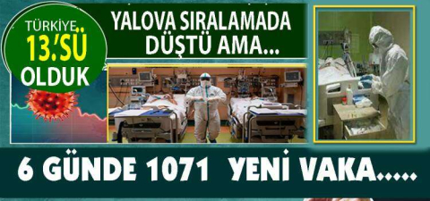 Sayısı az bir şekilde artarken diğer illerde vaka sayısı artınca Yalova 9.sıradan 13 sıraya düştü. Her ne kadar sıra kaybetsek te Yalova’da vaka sayısı arttı.