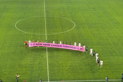 BURSA (İGFA) - Bursasporlu futbolcular ‘1-31 Ekim meme kanseri farkındalık ayı’ pankartıyla sahaya çıkarak meme kanserine dikkat çekerken, Teksas taraftar grubu ise kadına şiddete dikkat çekti.